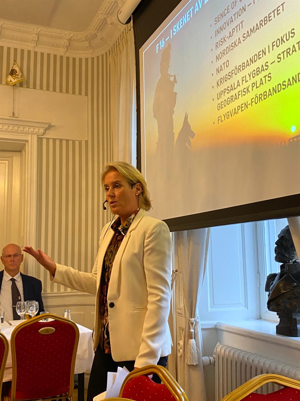 Pernille lyfte fram det Nordiska samarbetet i perspektivet att det är ett starkt gemensamt flygvapen Danmark, Norge, Finland och Sverige har och kommer att få med cirka 230 stridsflygplan J-35 och Gripen E. Nato är självklart högt på agendan i vardagen. "Krigsförbanden i fokus" har vi hört förr men förstår det fokus som måste till. För F 16s del är införandet av S 106 "Global Eye" viktigt. Dessa kommer baseras på Ärna/Arlanda.